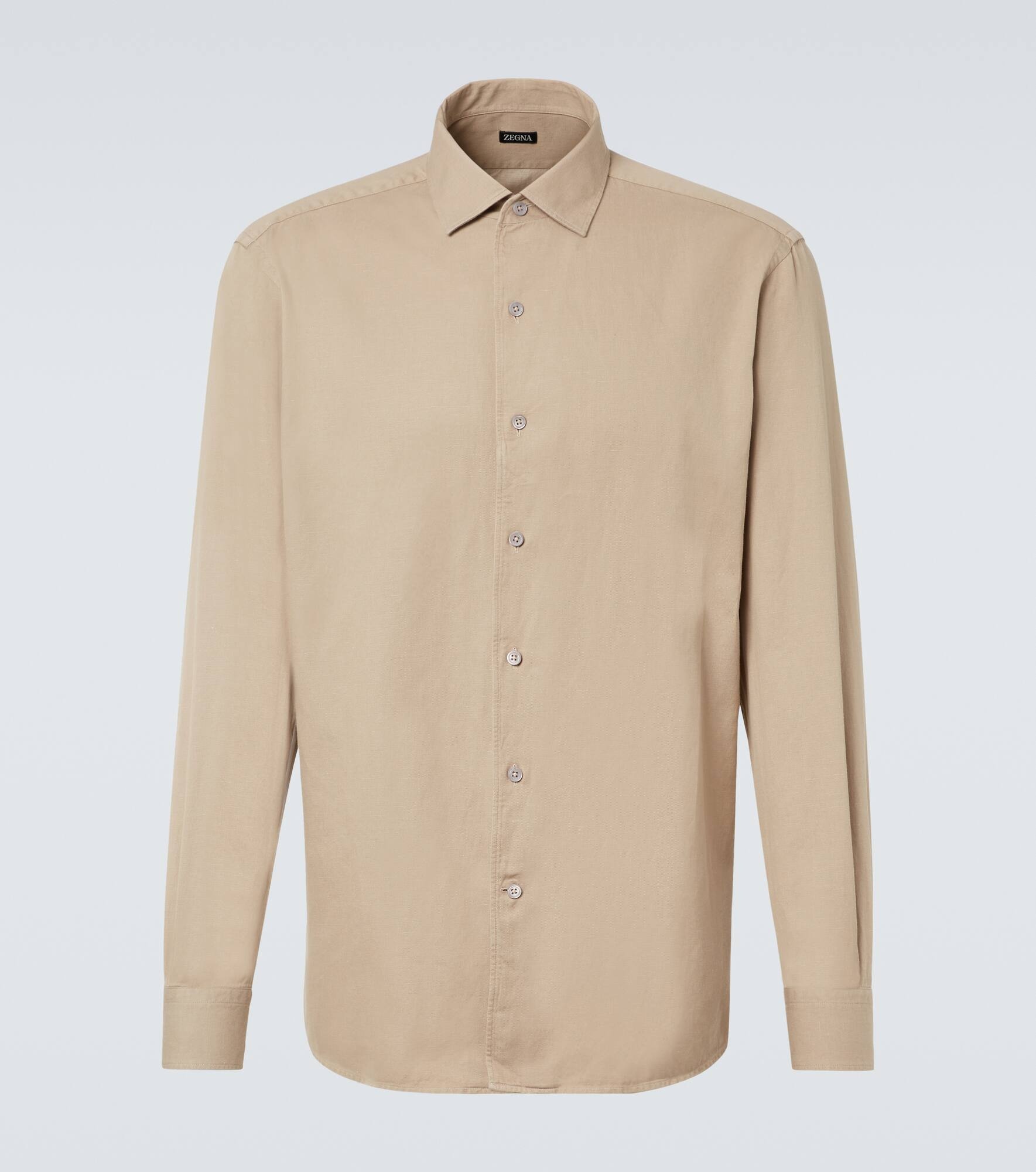 Established with the aim to create the world’s finest fabrics, Zegna is now the go-to brand for luxurious and innovative menswear. Cut from a cotton and wool denim, this classic shirt is a breezy staple for warmer days. Product Details - Material: 76% cotton, 24% wool - Care instructions: machine wash at 30 degrees - Made in Italy - Designer color name: Light taupe - Item color: beige - Closure: buttoned front - Cuff: two buttons - Item number: P01010492 Size & Fit - True to size - Without pleats in the back - Classic fit - Non-stretchy fabric - Falls below the hip - Height of model is 189cm-74.5" and wears a size L