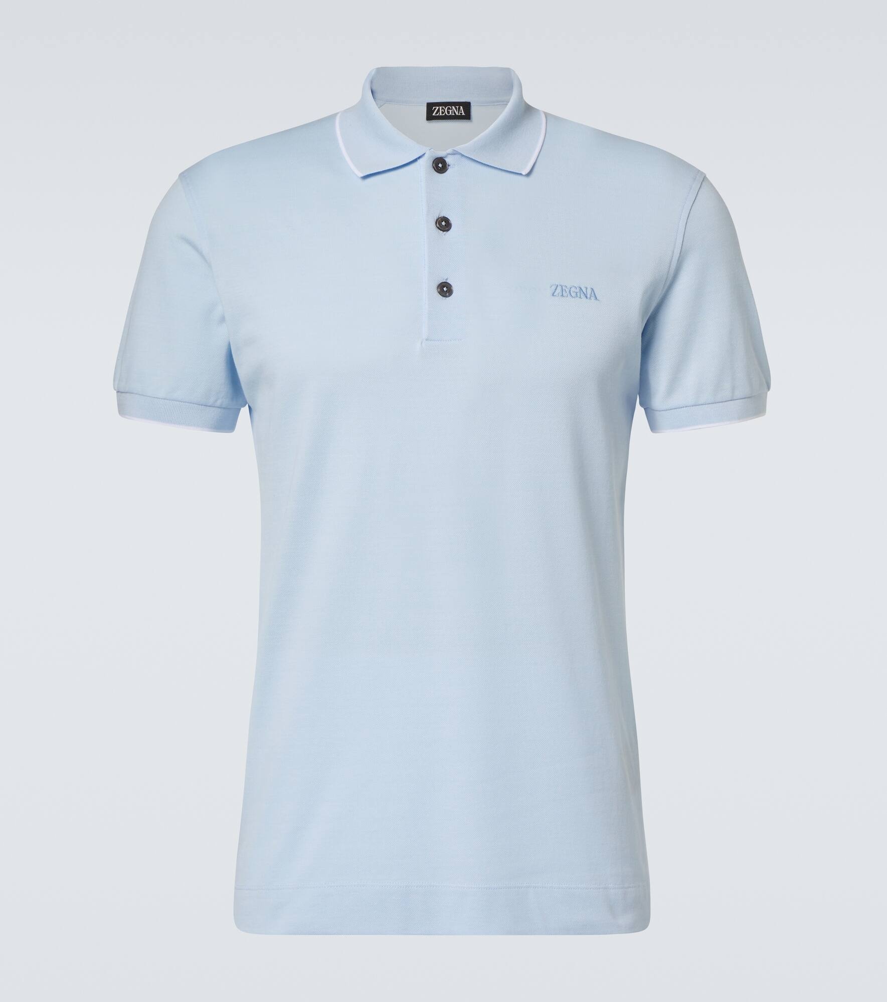 Product Details - Material: 95% cotton, 5% elastane - Care instructions: hand wash - Made in Turkey - Designer color name: Light Blue - Collar: polo collar - Item number: P00953258 Size & Fit - True to size - For a wider chest we recommend taking one size up - Straight fit - Stretchy fabric - Falls to the hip - The model in the picture is 185cm-6'1" and wearing a size IT 48