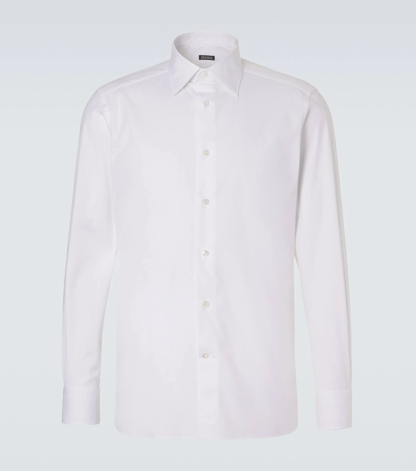 Established with the aim to create the world’s finest fabrics, Zegna is now the go-to brand for luxurious and innovative menswear. This white shirt is crafted from a cotton-blend poplin and features a regular fit with buttoned front closure. Product Details - Material: 96% cotton, 4% elastane - Care instructions: dry clean - Made in Turkey - Color: white - Designer color name: Optical White - Contains non-textile parts of animal origin - Collar: classic (Straight point) - Closure: buttoned front - Cuff: buttoned - Item number: P01173239 Size & Fit - Height of model is 189cm-74.5" and wears a size EU 41