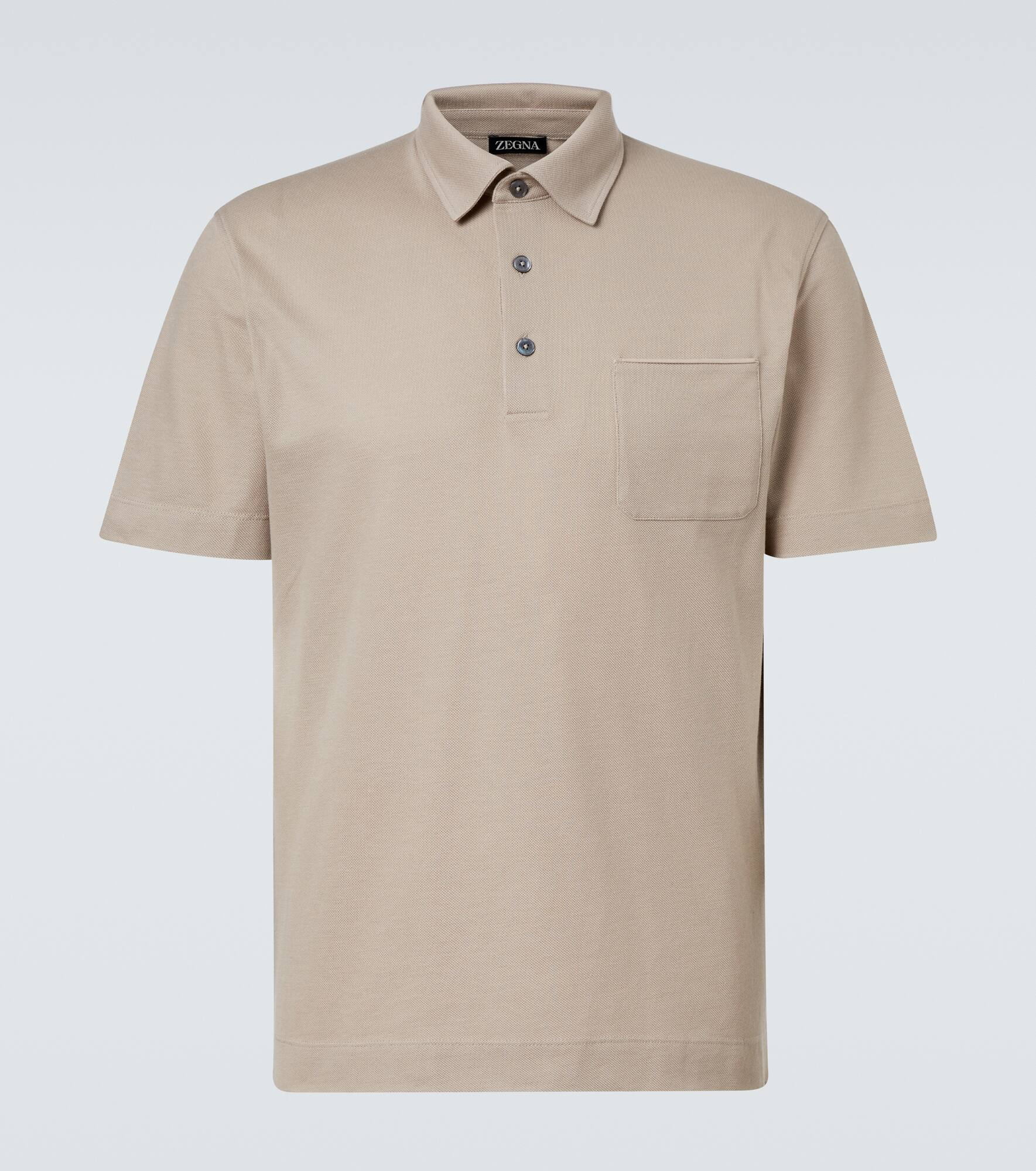 Zegna is known for creating dependable staples to see you through the seasons, and this polo shirt is no exception. Made from cotton, this piece has a classic fit with a button-through neckline, a chest pocket, and a flat collar. Product Details - Material: 100% cotton - Care instructions: dry clean - Made in Turkey - Designer color name: Light taupe - Item color: beige - Details: 100% calf leather - Collar: polo collar - Pockets: rounded chest pocket - Closure: partially buttoned front - Contains non-textile parts of animal origin - Item number: P01057483 Size & Fit - True to size - Straight fit - Slightly stretchy fabric - Falls to the hip - Height of model is 188cm-74" and wears a size IT 50