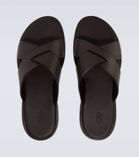 Meticulously made from calfskin leather, these sandals from Zegna showcase the brand's dedication to unmatched craftsmanship. This pair features criss-cross straps on the uppers and subtle logo detailing on the insoles. Product Details - Upper: leather - Lining: leather - Sole: leather insole and sole - Toe shape: almond open toe - Made in Italy - Includes: dust bag, shoe box - Designer color name: Testa Di Moro - Item color: brown - Item number: P01021856 Size & Fit - True to size - UK sizes