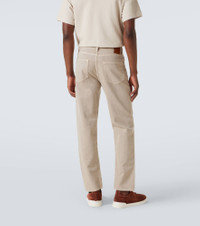 Established with the aim to create the world’s finest fabrics, Zegna is now the go-to brand for luxurious and innovative menswear. These pants are a straight-leg pair made from cotton with leather trims. Product Details - Material: 100% cotton - Care instructions: machine wash at 30 degrees - Made in Romania - Designer color name: Light taupe - Item color: white - Lining: 100% cotton - Details: 100% leather - Contains non-textile parts of animal origin - Item number: P01010483 Size & Fit - Fits small to size - we recommend trying one size larger - Non-stretchy fabric - Straight leg - Mid-rise - Height of model is 189cm-74.5" and wears a size 32