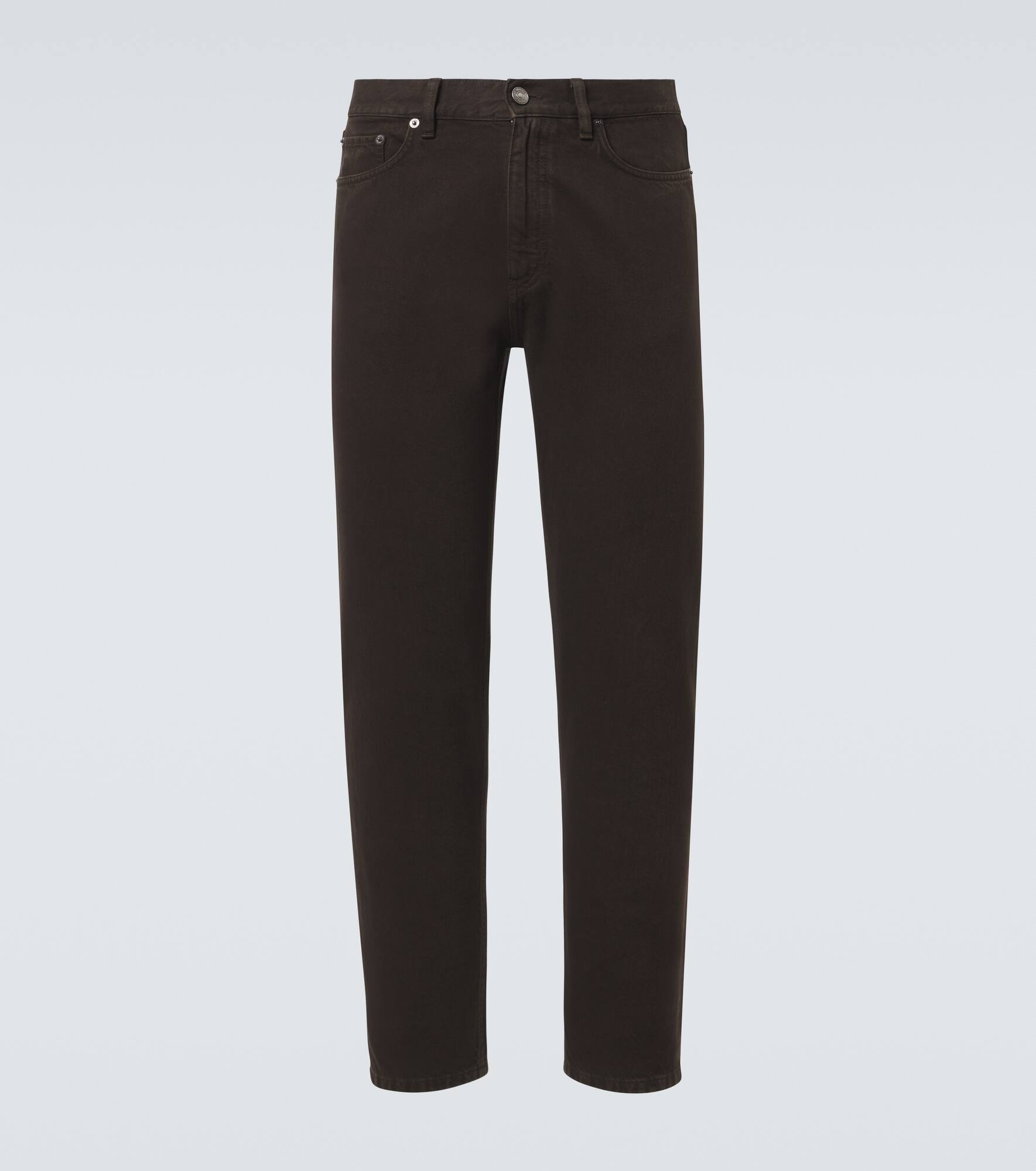 Established with the aim to create the world’s finest fabrics, Zegna is now the go-to brand for luxurious and innovative menswear. These pants are a straight-leg pair made from cotton with leather trims. Product Details - Material: 100% cotton - Care instructions: machine wash at 30 degrees - Made in Romania - Designer color name: Dark Brown - Item color: brown - Lining: 100% cotton - Details: 100% leather - Contains non-textile parts of animal origin - Item number: P01010484 Size & Fit - Fits small to size - we recommend trying one size larger - Non-stretchy fabric - Straight leg - Mid-rise - Height of model is 189cm-74.5" and wears a size 32