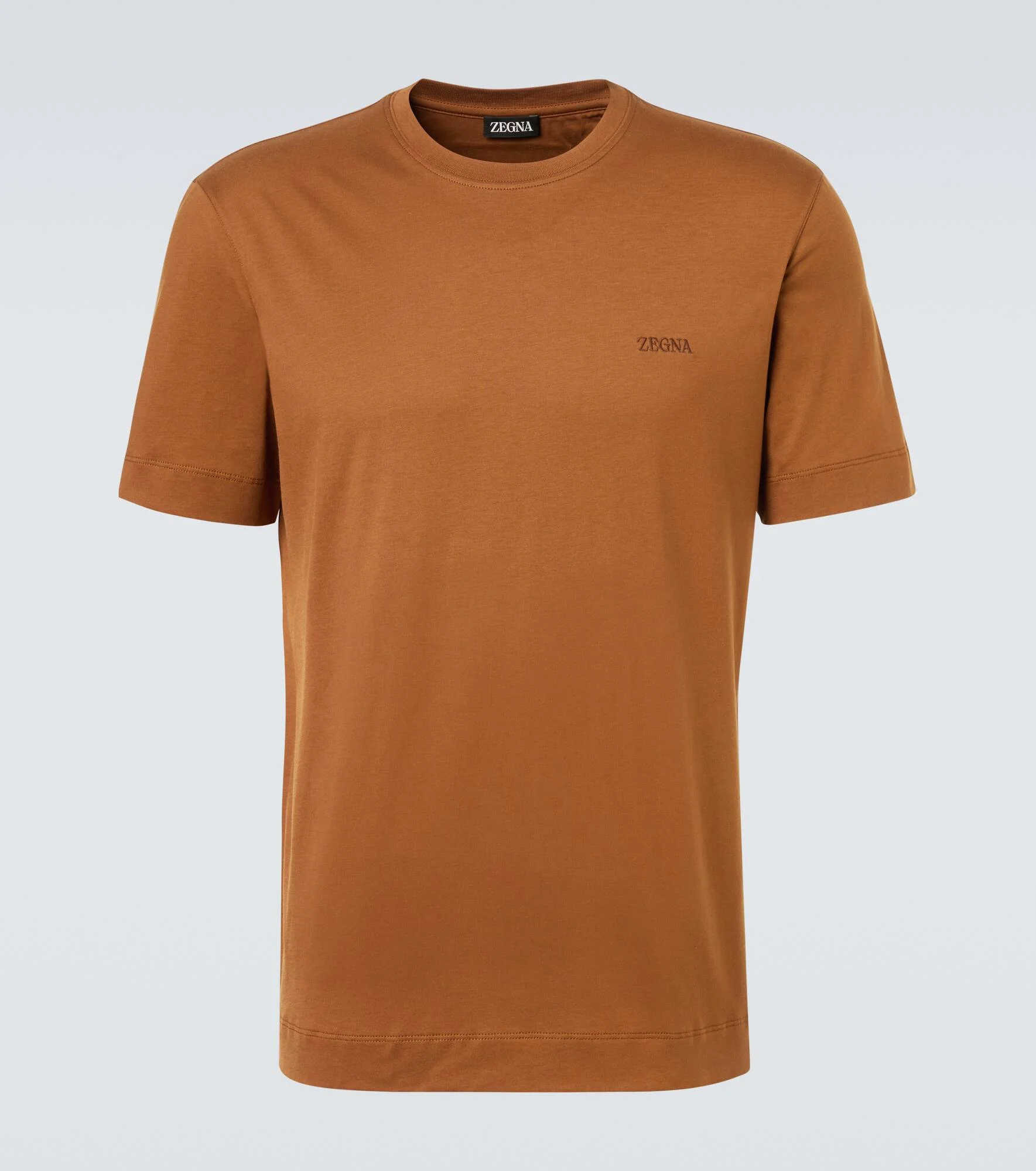 Established with the aim to create the world’s finest fabrics, Zegna is now the go-to brand for luxurious and innovative menswear. Made from soft cotton jersey, this classic T-shirt is finished with logo embroidery on the chest. Product Details - Material: 100% cotton - Care instructions: machine wash at 30 degrees - Made in Portugal - Color: brown - Designer color name: Dark Foliage Oasi - Collar: crewneck - Item number: P01137453 Size & Fit - True to size - Straight fit - Non-stretchy fabric - Falls below the hip - Height of model is 189cm-74.5" and wears a size 50