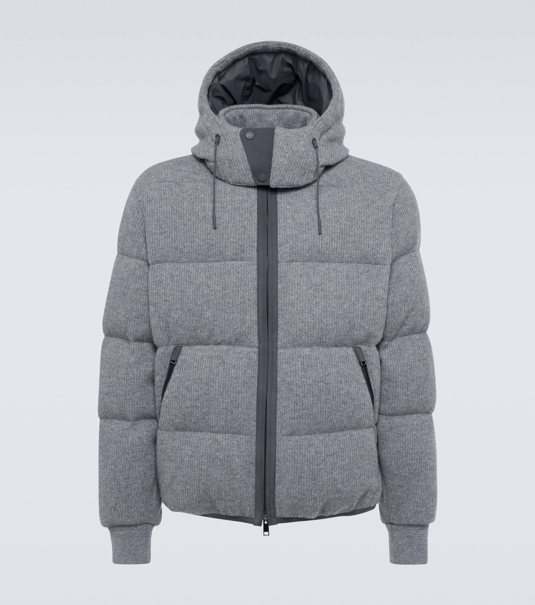 Product Details - Material: 100% cashmere - Care instructions: dry clean - Made in Italy - Designer color name: Grey Melange - Details: 100% calf leather - Insert: 80% cashmere, 18% polyamide, 2% elastane - Filling: 90% down, 10% feathers - Lining: 100% polyester - Contains non-textile parts of animal origin - Item number: P00964930