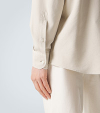 Zegna has established itself as a go-to brand for the world’s finest fabrics, as shown on this shirt. Cut from pure mulberry silk, this white shirt drapes beautifully into a relaxed silhouette with a semi-spread collar and a rounded hem. Product Details - Material: 100% silk - Care instructions: dry clean - Made in Italy - Color: white - Designer color name: Ivory - Contains non-textile parts of animal origin - Collar: classic (Straight point) - Closure: buttoned front - Cuff: buttoned - Item number: P01137317 Size & Fit - True to size - Without pleats in the back - Straight fit - Non-stretchy fabric - Falls below the hip - The model in the picture is 185cm-6'1" and wearing a size L