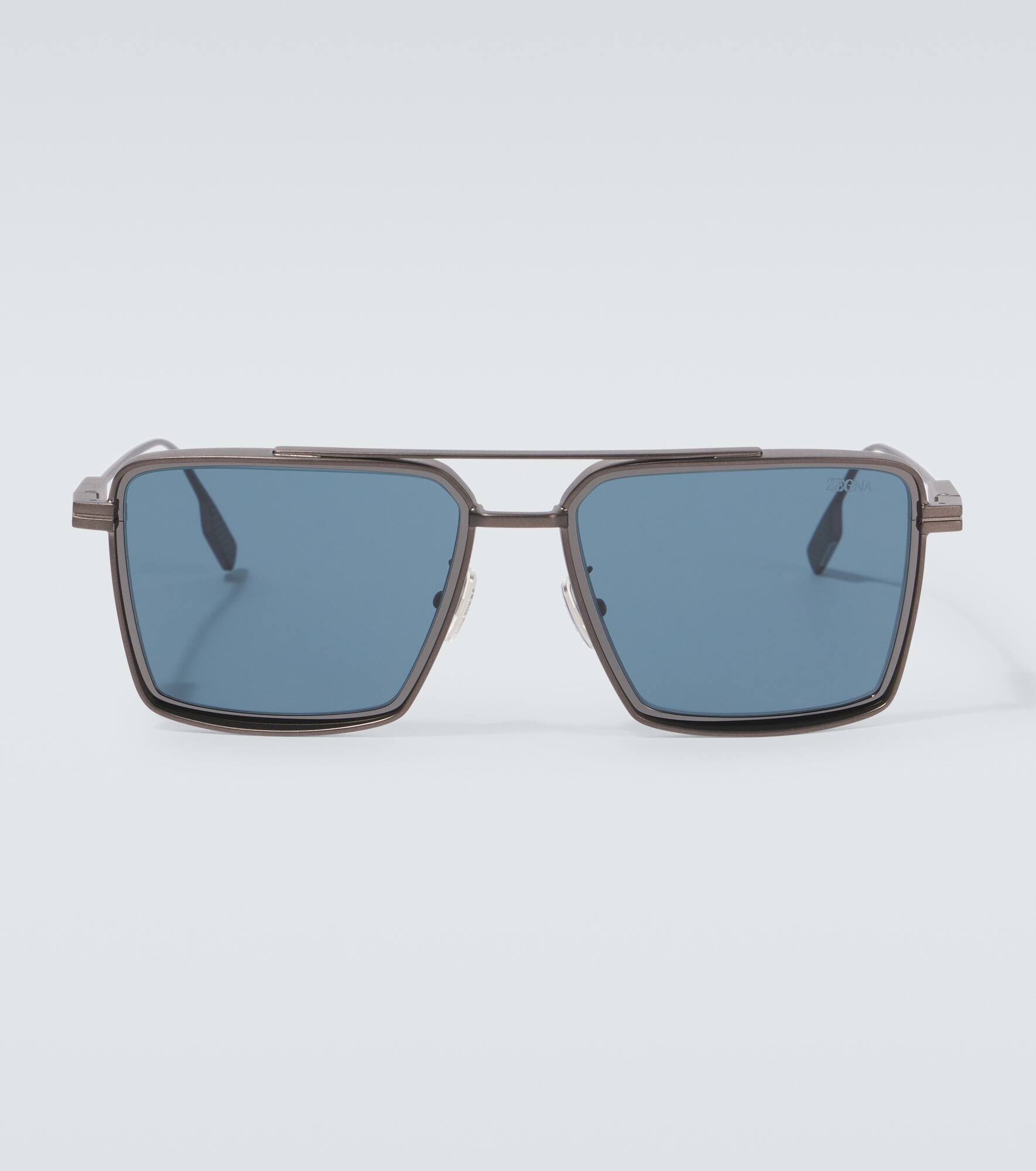 Ideal for everyday wear, these sunglasses from Zegna showcase square frames with a top bar. The design is complete with adjustable nose pads and the iconic double stripe detail along the temples. Product Details - Frame material: metal - Frame color: black - Lens filter category 3 - Lens color: blue - Made in Italy - Includes: case and presentation box, cleaning cloth - Designer color name: Matte Dark Bronze /Blue - The color of the case may vary - Item number: P01006179 Size & Fit - Lens width: 49mm-1.95" - Bridge size: 22mm-0.85" - Earpiece length: 145mm-5.7"