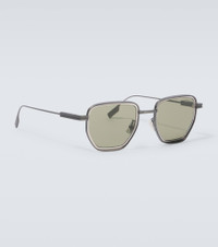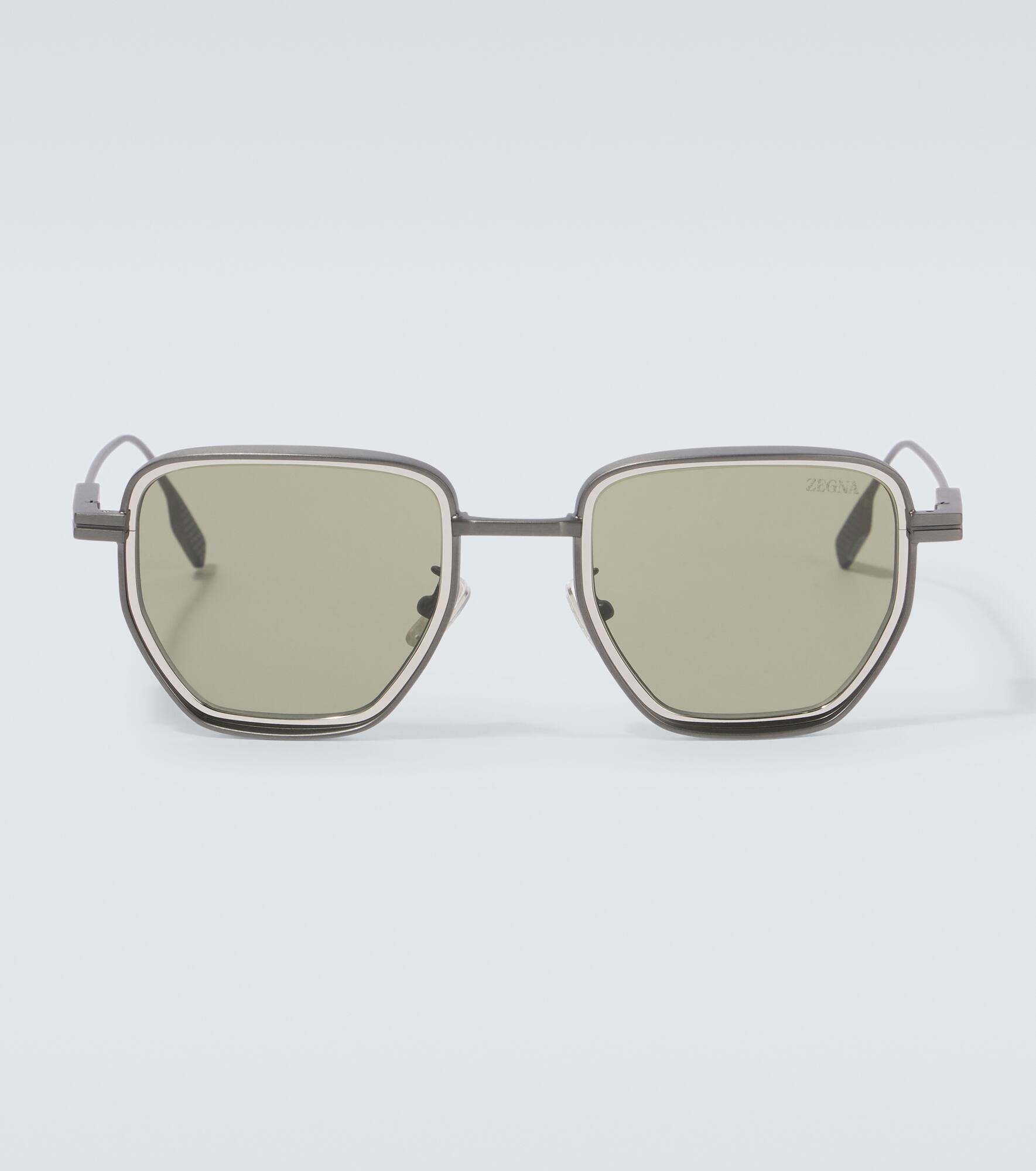 These sunglasses from Zegna are presented in a geometric square shape, ideal for everyday wear. The design features metallic frames with a matte finish, and the iconic double stripe detail along the temples. Product Details - Frame material: metal - Frame color: black - Lens filter category 2 - Lens color: green - Made in Italy - Includes: case and presentation box, cleaning cloth - Designer color name: Matte Gunmetal/Green - The color of the case may vary - Item number: P01006178 Size & Fit - Lens width: 49mm-1.95" - Bridge size: 22mm-0.85" - Earpiece length: 145mm-5.7"