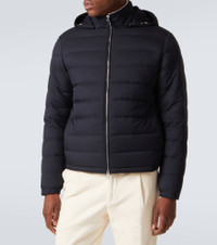 Established with the aim to create the world’s finest fabrics, Zegna is now the go-to brand for luxurious and innovative menswear. Made from technical twill, this down jacket features a silver-toned zipper fastening, a removable hood, and fitted trims to lock in heat. Product Details - Material: 100% polyester - Care instructions: dry clean - Made in Italy - Designer color name: Navy Blue - Item color: blue - Hardware color: silver - Lining: 100% wool - Sleeve lining: 100% polyester - Pocket lining: 100% cotton - Details: 100% calf leather - Filling: 90% down, 10% feathers - Contains non-textile parts of animal origin - Detachable drawstring hood - Pockets: snap-buttoned pockets, internal pockets - Closure: two-way zipped front - Drawstring at the hem for adjustable fit - Item number: P01069630 Size & Fit - True to size - For a looser fit, we recommend taking one size up - Slim fit - Adjustable hem - Non-stretchy fabric - Falls to the hip - Height of model is 189cm-74.5" and wears a size IT 50