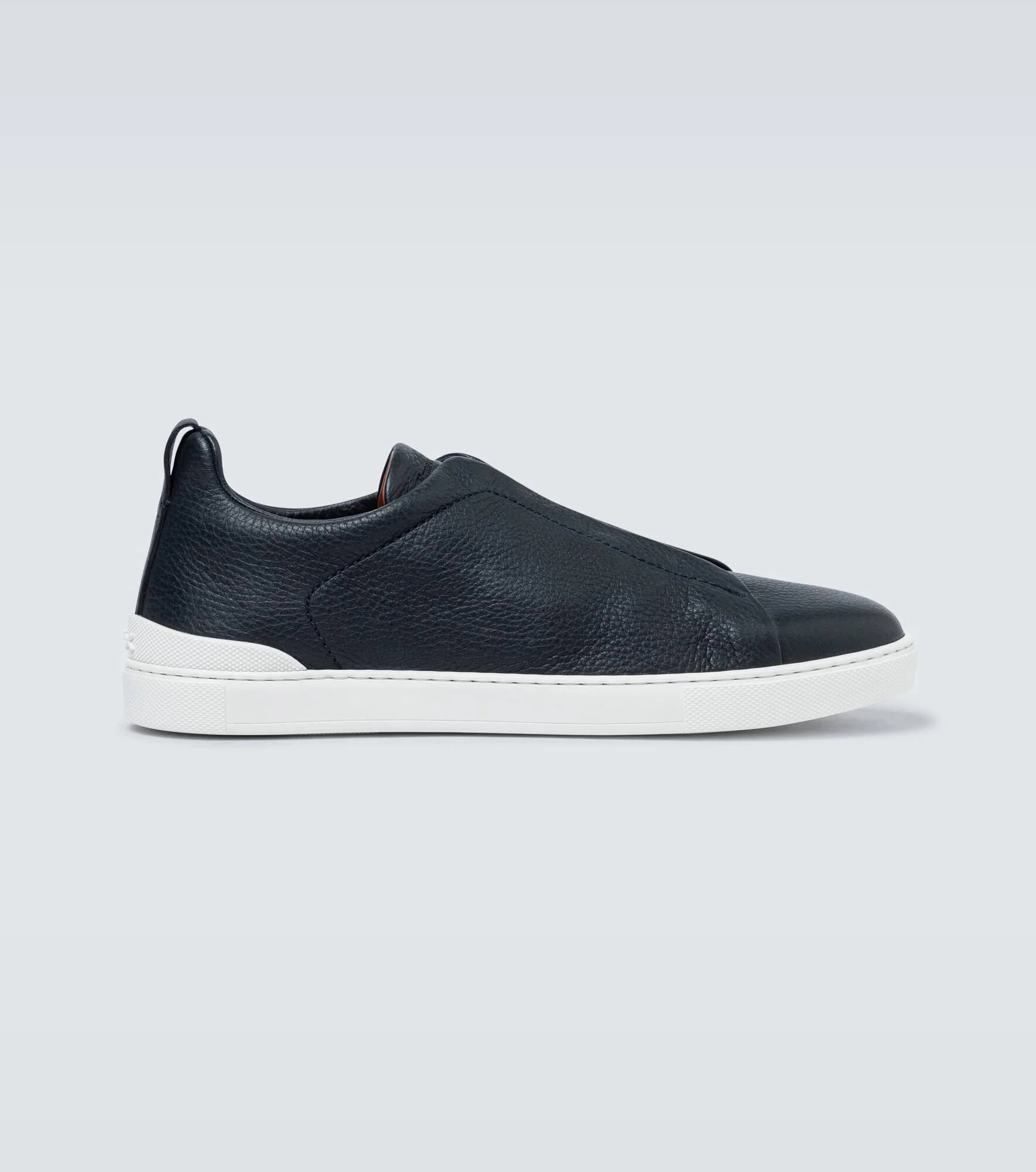 Crafted in Italy from supple full-grain leather, these navy blue Zegna sneakers have partially concealed elasticated laces echoing the label's triple-X motif. Product Details - Lining: leather - Sole: leather insole, rubber sole - Toe shape: round toe - Upper: deer leather - Closure: lace-up - Made in Italy - Item number: P00480289 Size & Fit - True to size - Half sizes please take the next size up - UK sizes