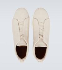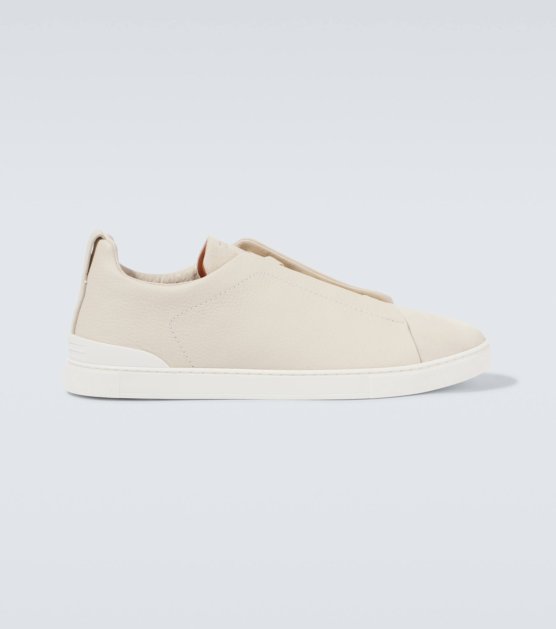 Triple Stitch Full-Grain Leather and Suede Sneakers Off-white