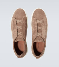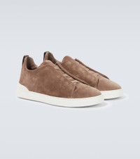 Made from supple brown suede, the Triple Stitch sneakers from Zegna have embossed branding at the tongue, feature elasticated laces for a slip-on design, and sit atop comfortable rubber soles. Product Details - Lining: leather - Sole: leather insole, rubber sole - Toe shape: round toe - Made in Italy - Upper: leather - Designer color name: Off White - Comes with a box, Comes with dust bags - Item number: P00734226 Size & Fit - True to size - Half sizes please take the next size down - UK sizes