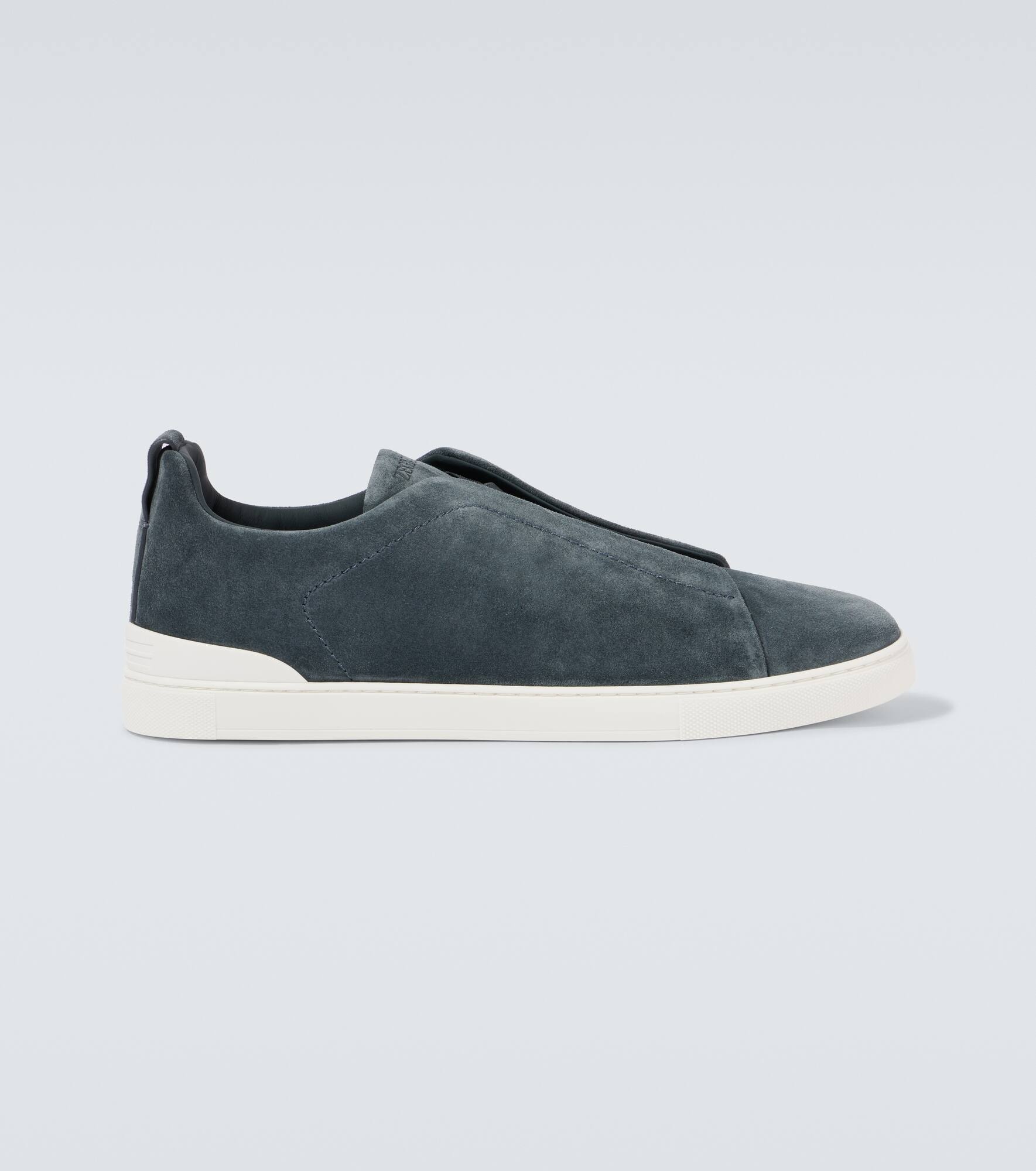 Established with the aim to create the world’s finest fabrics, Zegna is now the go-to brand for luxurious and innovative menswear. Made in Italy from blue suede, the Triple Stitch sneakers are a lightweight pair set atop durable rubber soles. Product Details - Upper: leather - Lining: leather - Sole: leather insole, rubber sole - Toe shape: round toe - Made in Italy - Includes: shoe box, dust bags - Designer color name: Blue - Closure: elasticated strap - Item number: P01010456 Size & Fit - True to size - Half sizes please take the next size down - UK sizes