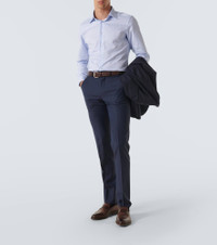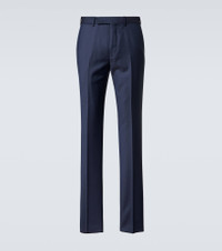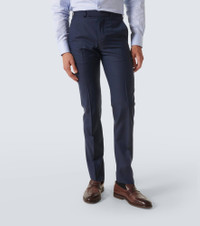 Product Details - Material: 100% wool - Care instructions: dry clean - Made in Italy - Designer color name: Blue - Lining: 100% viscose - Pocket lining: 100% cotton - Closure: zipper fly, button fastening - Pockets: side slit pockets, back pockets, buttoned pockets - Belt loops - Item number: P00953446 Size & Fit - True to size - Non-stretchy fabric - Slim-leg - Unhemmed for tailoring - The model in the picture is 185cm-6'1" and wearing a size 48