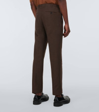 Zegna's streamlined sophistication directs this wool and linen blend suit. The single-breasted blazer has a notched lapel and flap pockets, whilst the straight-leg pants have pressed creases and a cropped length. Product Details - Made in Italy - Pockets: breast pocket, side slit pockets, back pockets, flap pockets - Contains non-textile parts of animal origin - Designer color name: Brown - Material: 60% wool, 40% linen - Closure: zipper fly, button and hook fastenings, buttoned front - Care instructions: dry clean - Item number: P00734214 Size & Fit - True to size - Shoulder pad inserts - Close fit at the shoulders - Slim fit - Falls to the hip - Slim-leg - The model in the picture is 185cm-6'1" and wearing a size 48