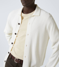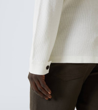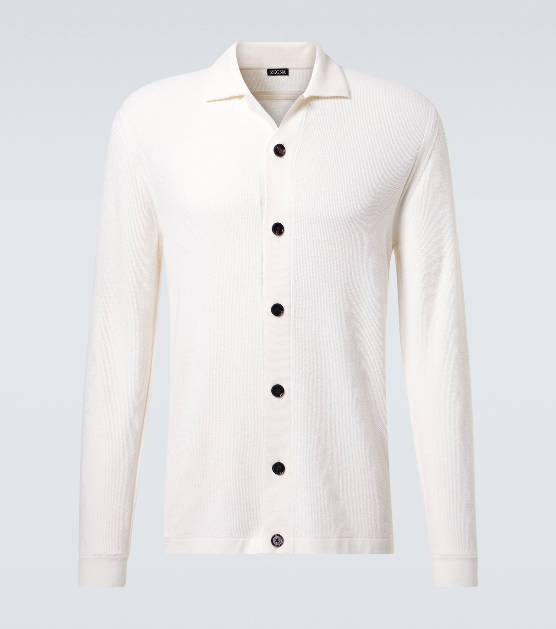 This pure wool shirt from Zegna combines the warmth of knitwear with the classic tailoring silhouette. Made in Italy, it showcases a textured three-dimensional stitch, a classic collar, and a sleek tubular hem. Product Details - Material: 100% wool - Care instructions: hand wash - Made in Italy - Designer color name: White - Closure: buttoned front - Contains non-textile parts of animal origin - Item number: P01010473 Size & Fit - True to size - Straight fit - Stretchy fabric - Falls to the hip - The model in the picture is 185cm-6'1" and wearing a size IT 50