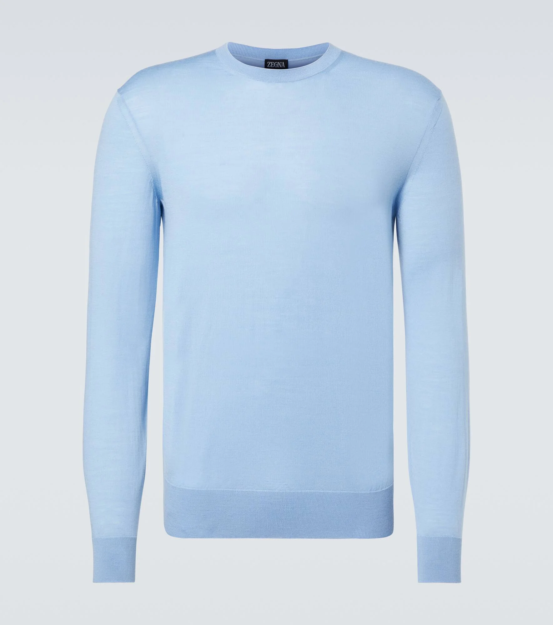 Established with the aim to create the world’s finest fabrics, Zegna is now the go-to brand for luxurious and innovative menswear. This sweater is crafted from wool and boasts a classic crewneck silhouette. Product Details - Material: 100% wool - Care instructions: machine wash at 30 degrees - Made in Italy - Designer color name: Light Blue - Item color: blue - Cuff: ribbed - Hem: ribbed - Item number: P01057439 Size & Fit - True to size - Semi-sheer - Straight fit - Stretchy fabric - Falls to the hip - Height of model is 189cm-74.5" and wears a size IT 50