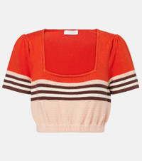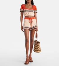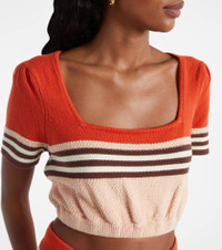 The Ascension top from Zimmerman is knitted from a breathable cotton blend to a cropped silhouette that can be adjusted with a drawstring. Featuring a central striped motif, this style can be paired with the matching shorts or worn solo. Product Details - Material: 95% cotton, 4% polyamide, 1% elastane - Care instructions: hand wash - Made in China - Designer color name: Stripe - Item color: multicolor - Item number: P01062825 Size & Fit - True to size - Cinched waist - Elasticated hem - Slightly stretchy fabric - The model seen in the picture is 178cm-5'10" and wearing a size 0