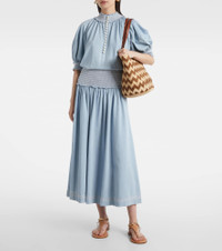 The Ascension skirt from Zimmerman strikes the perfect balance between sophisticated and casual. Crafted from denim, this piece is cut to a midi length and features flattering shirring at the waist. Product Details - Material: 100% cotton - Care instructions: machine wash at 30 degrees - Made in China - Designer color name: Ice Storm - Item color: blue - Item number: P01062831 Size & Fit - True to size - Elasticated waist - Non-stretchy fabric - The model seen in the picture is 178cm-5'10" and wearing a size 0