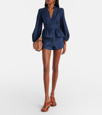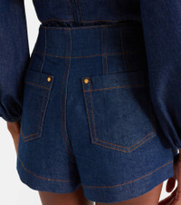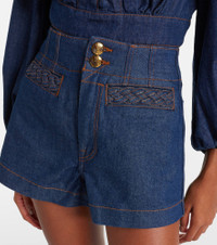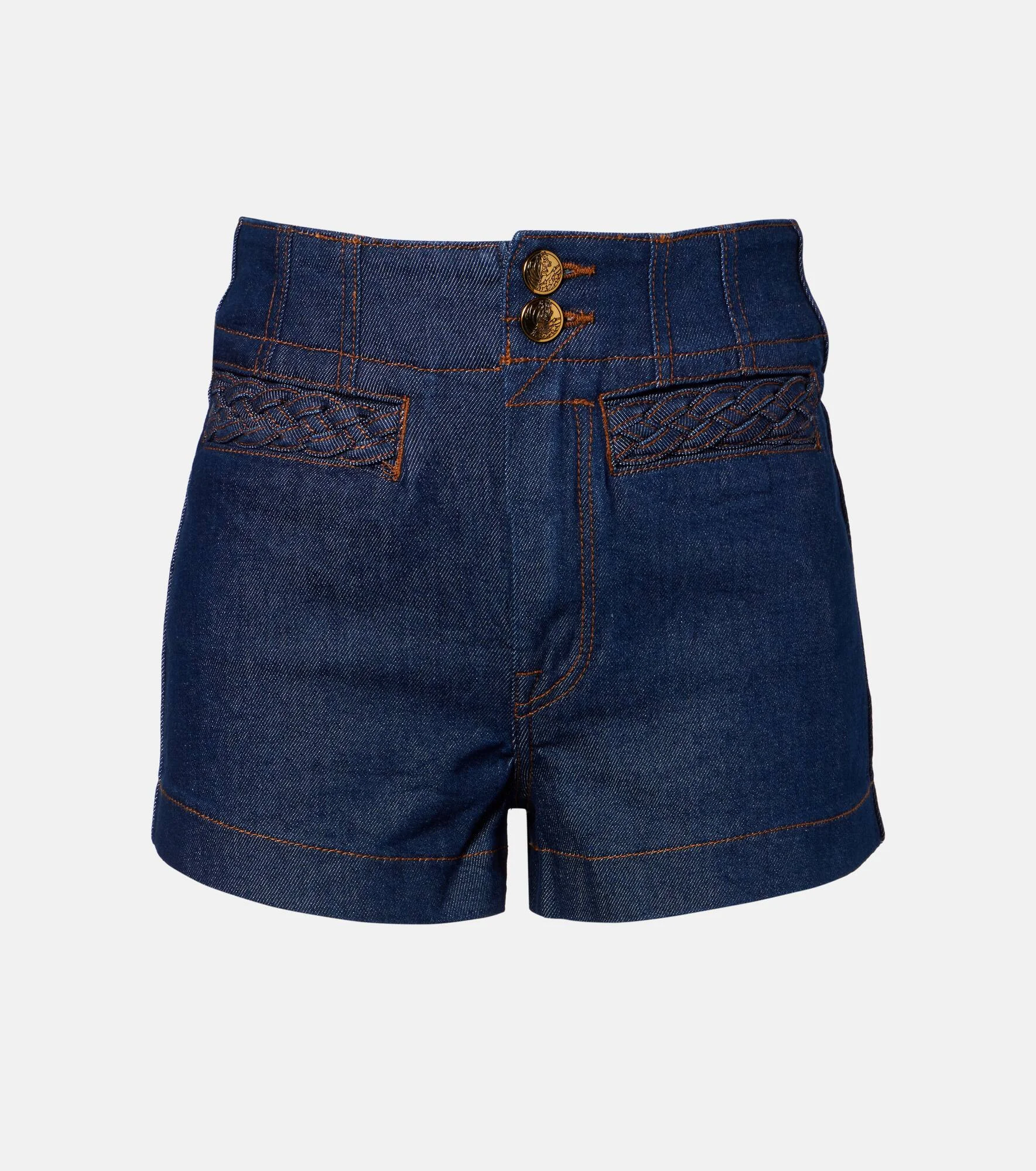 Ethereal and romantic barely scratch the surface when describing a Zimmermann piece. The Awaken denim shorts feature a high-rise waistband, pack pockets, and woven rope details on the front. Product Details - Material: 82% cotton, 17% lyocell, 1% elastane - Care instructions: machine wash at 30 degrees - Made in China - Designer color name: Ink - Item color: blue - Pocket lining: 65% polyester, 35% cotton - Hardware color: gold - Pockets: welt pockets, back pockets - Closure: zipper fly, button fastening - Item number: P01129832 Size & Fit - True to size - Slightly stretchy fabric - Straight leg - High-waisted - The model seen in the picture is 178cm-5'10" and wearing a size 0