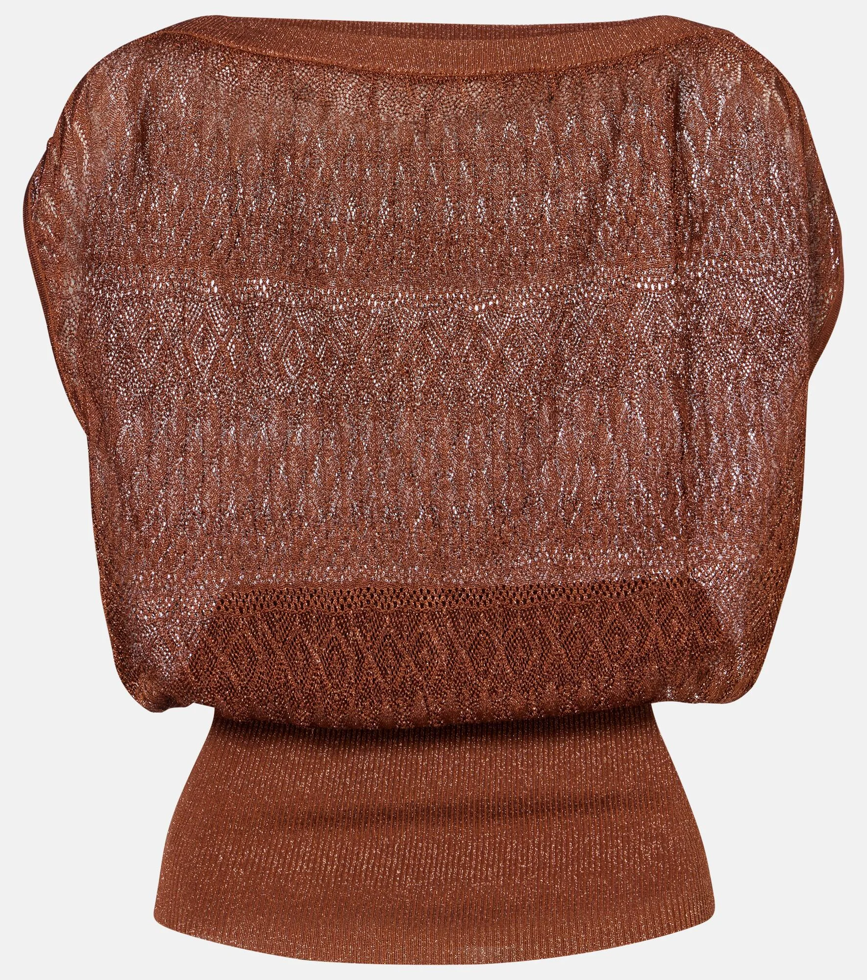 Ethereal and romantic barely scratch the surface when describing a Zimmermann piece. The Awaken top is crafted from lame lace and features a boat neckline, short sleeves, and an elongated ribbed hem. Product Details - Material: 78% viscose, 13% polyester, 9% metallic fibres - Care instructions: dry clean - Made in China - Designer color name: Metallic Mocha - Item color: brown - Material II: 63% viscose, 18% polyamide, 11% polyester, 7% metallic fibres, 1% elastane - Elasticated waistband - Hem: ribbed - Item number: P01129825 Size & Fit - True to size - Semi-sheer - Cinched waist - Stretchy fabric - Falls to the hip - The model seen in the picture is 178cm-5'10" and wearing a size 0