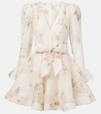 Balance belted floral-print linen and silk-blend organza mini dress White