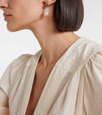 Add a whimsical touch to your looks with the Bloom drop earrings from Zimmermann. Crafted with luminous freshwater pearls, the pair are adorned with glass cabochon and feature secure post-back closures. Product Details - Material: gold-plated brass, pearls, glass, stainless steel - Made in China - Item color: gold, burgundy - Closure: butterfly-back fastening - Includes: box, dust bag - Item number: P01132520 Size & Fit - Length 4cm-1.5" - Max. width 1,5cm-0.5"