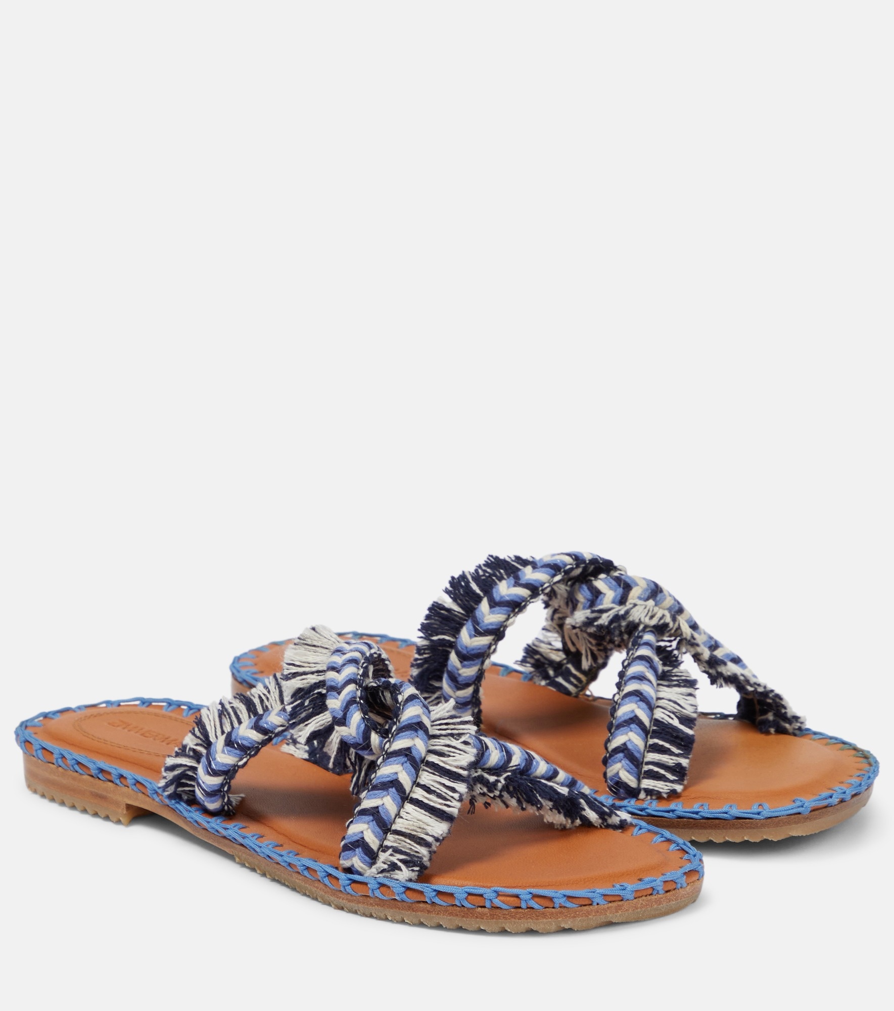 Add personality to your footwear edit with the Braided Strap sandals from Zimmermann. Expertly crafted in Spain, the bohemian style boasts fringed trims and is finished with artisanal stitching. Product Details - Toe shape: round open toe - Upper: fabric - Sole: leather insole, rubber sole - Made in Spain - Designer color name: Blue Multi - Comes with dust bags - Item number: P00813409 Size & Fit - True to size - Half sizes please take the next size up - European sizes - 1,5cm-0.5" wedge heel (size EU 38)