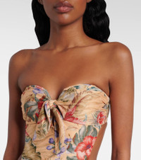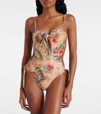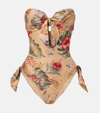 Ethereal and romantic barely scratch the surface when describing a Zimmermann piece. The Coco floral swimsuit has bow details on the front and sides, with an open back. The design has removable, adjustable straps for a versatile fit. Product Details - Material: 64% polyester, 16% metallic fibres, 12% polyamide, 8% elastane - Care instructions: hand wash - Made in China - Designer color name: Tan Multi Floral - Item color: multicolor - Lining: 92% polyamide (recycled), 8% elastane - Item number: P01062832 Size & Fit - True to size - Removable padding - Minimal coverage - High-cut leg - The model seen in the picture is 178cm-5'10", cup size B, and wearing a size 0