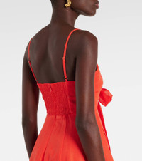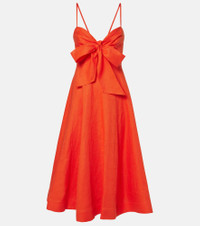 Crush bow-detail linen midi dress