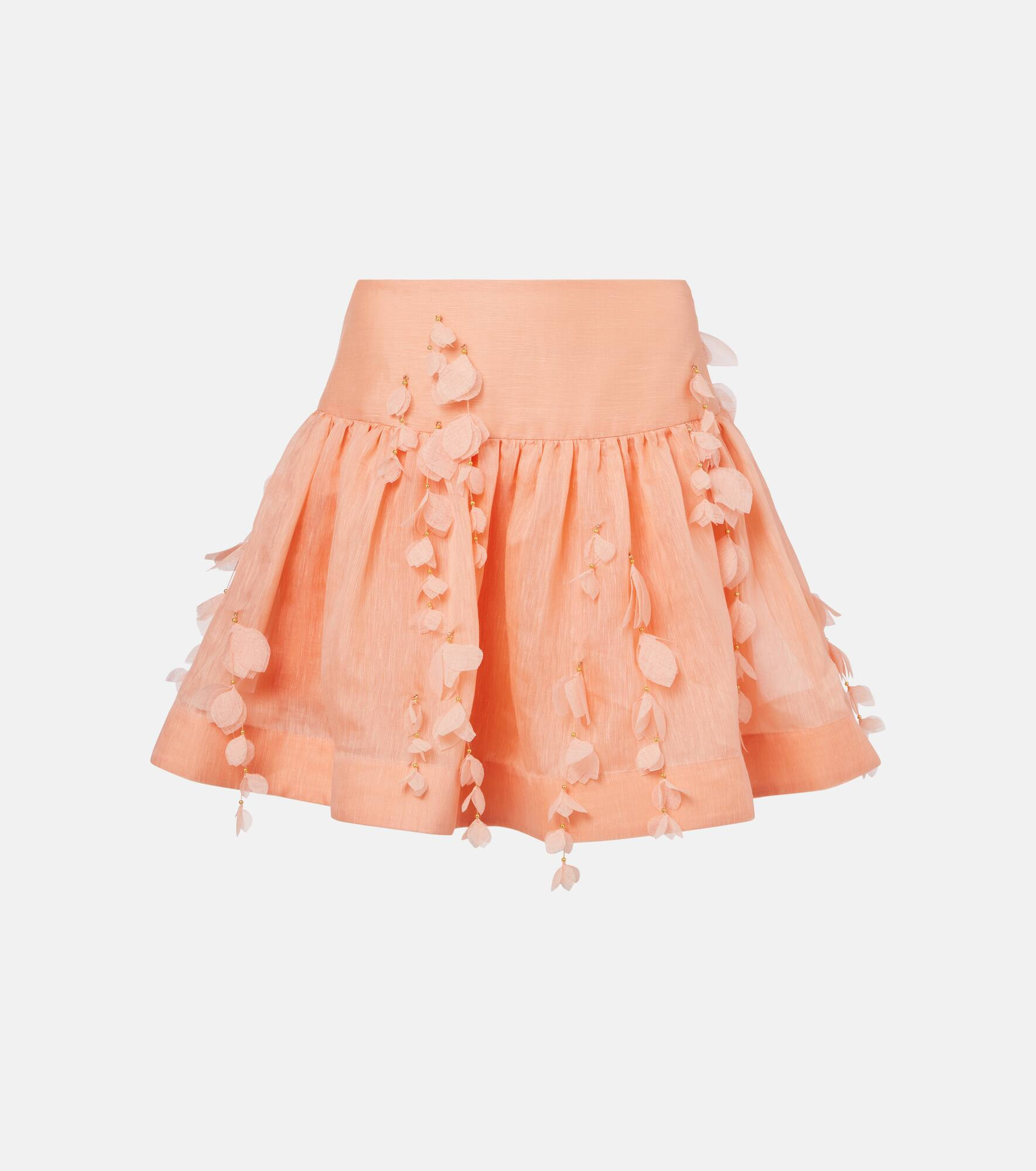 Ethereal and romantic barely scratch the surface when describing a Zimmermann piece. Made from linen and silk, the Dawning miniskirt features petal-inspired embellishments, a flared silhouette, and a high-rise waistline. Product Details - Material: 52% linen, 48% silk - Care instructions: machine wash cold - Made in China - Designer color name: Coral - Item color: orange - Closure: concealed zipper - Item number: P01046558 Size & Fit - True to size - Non-stretchy fabric - The model seen in the picture is 178cm-5'10" and wearing a size 0