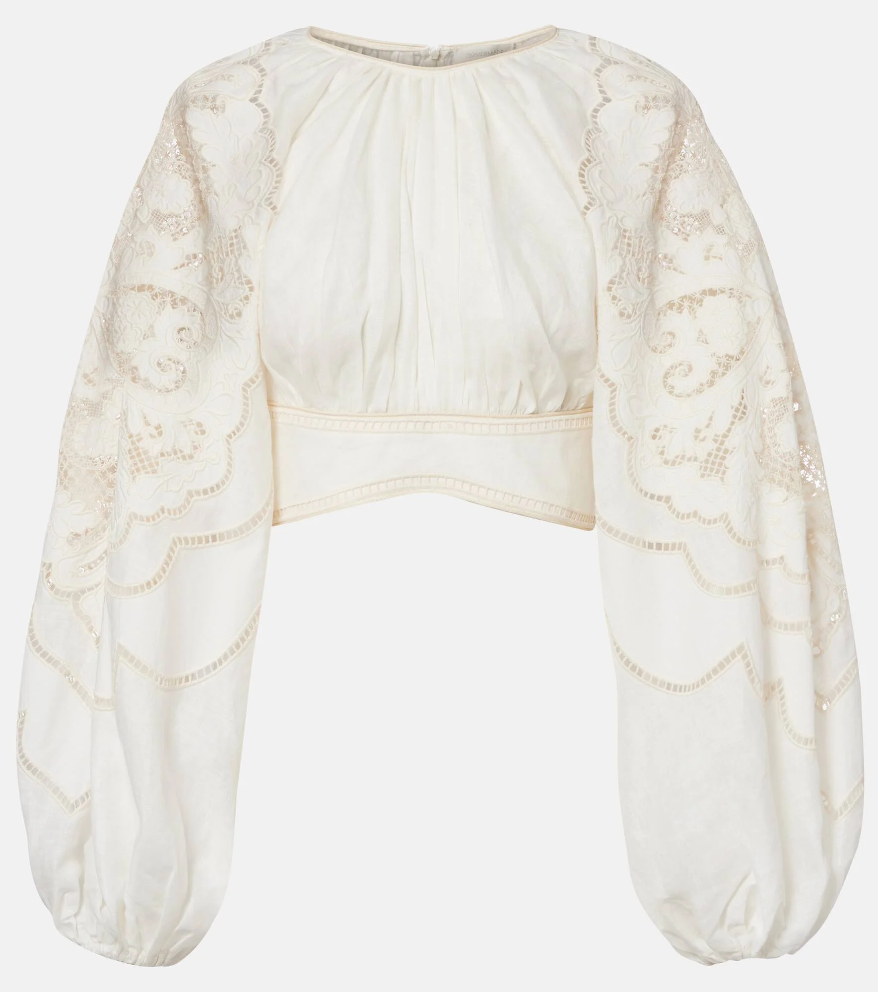 Ethereal and romantic barely scratch the surface when describing a Zimmermann piece. This Daylight crop top is crafted from linen, complemented by a gathered bodice and intricately embroidered puff sleeves. Product Details - Material: 100% linen - Care instructions: dry clean - Made in China - Color: white - Designer color name: Cream - Item color: white - Lining: 100% cotton - Embroidery: 100% polyester - Closure: concealed zipped back - Item number: P01129874 Size & Fit - Fits large to size - we recommend trying one size smaller - Elasticated top - Cinched waist - Non-stretchy fabric - Cropped - The model seen in the picture is 178cm-5'10" and wearing a size 00