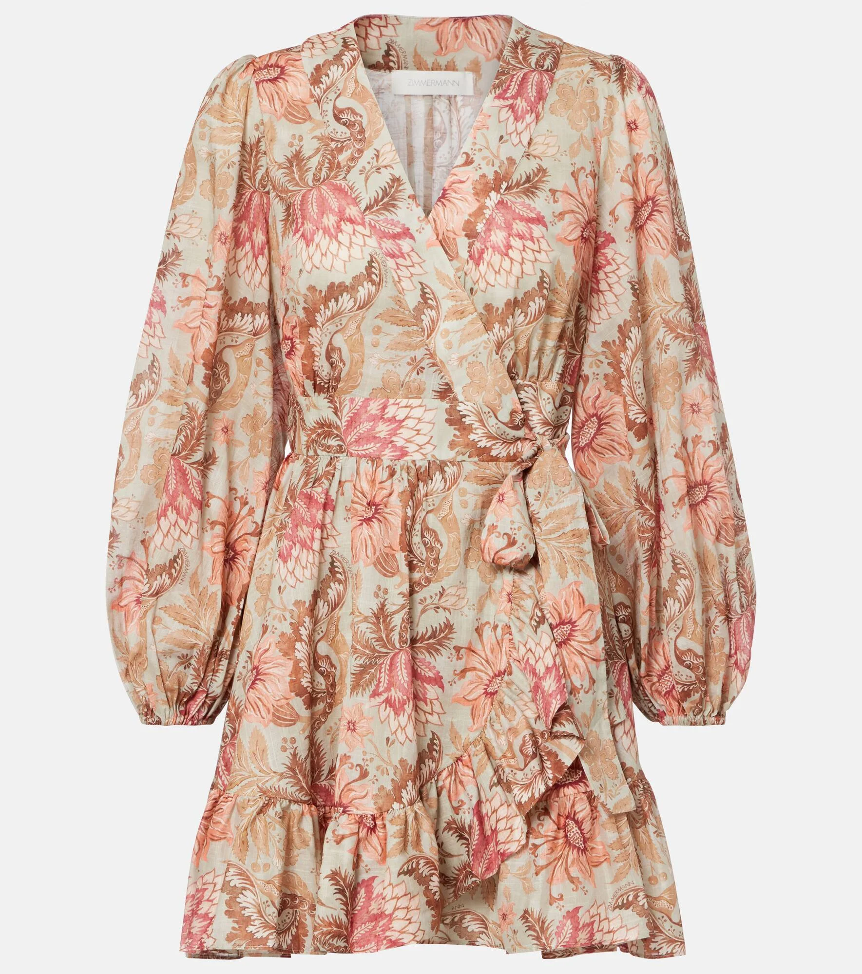 Ethereal and romantic barely scratch the surface when describing a Zimmermann piece. This Daylight wrap dress is cut from cotton to a mini-length silhouette, defined by a distinctive floral print and ruffled trims along the skirt. Product Details - Material: 100% cotton - Care instructions: dry clean - Made in China - Color: multicoloured - Designer color name: Stamp Floral Sage - Item color: multicolor - Lining: 100% cotton - Closure: wrap-front - Item number: P01129877 Size & Fit - True to size - Loose fit, comes with belt - Non-stretchy fabric - The model seen in the picture is 178cm-5'10" and wearing a size 0