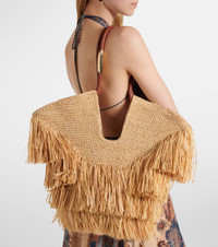 Ethereal and romantic barely scratch the surface when describing a Zimmermann piece. Made purely from raffia, the Goldentime tote bag arrives in Medium proportions and features tiered fringe details. Product Details - Material: raffia - Lining: palm leaf - Made in Madagascar - Designer color name: Natural - Item color: beige - Contains non-textile parts of animal origin - Hardware color: gold - Shoulder straps - Item number: P01021818 Size & Fit - Height 35cm-14" - Width 52cm-20.5" - Depth 12cm-4.5" - Length of handles 50cm-19.5"