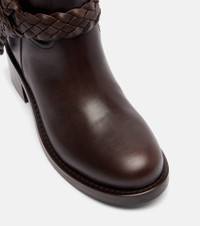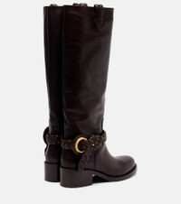 Ethereal and romantic barely scratch the surface when describing a Zimmermann piece. Made in Italy from dark brown leather, the Helix boots are a knee-high pair with a removable braided strap detail, rounded toes, and 40mm block heels. Product Details - Upper: calf leather - Lining: calf leather - Sole: leather insole, leather and rubber sole - Toe shape: round toe - Made in Italy - Includes: shoe box, dust bag - Designer color name: Chocolate - Item color: brown - Hardware color: gold - Closure: buckle fastening - Item number: P01097676 Size & Fit - True to size - Half sizes please take the next size down - European sizes - 4cm-1.5" heel (size EU 38) - 42cm-16.5" shaft height (size EU 38) - 40cm-15.5" shaft width (size EU 38) - shaft width measured on largest part of boot