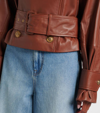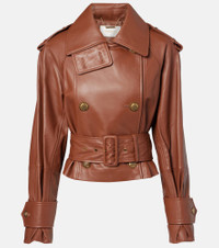 Ethereal and romantic barely scratch the surface when describing a Zimmermann piece. Made from brown leather, the Hypnotic jacket is designed to resemble a cropped version of a classic trench coat, complete with a belted waistline. Product Details - Material: 100% sheep leather - Care instructions: specialist clean - Made in Turkey - Designer color name: Tan - Item color: brown - Hardware color: antique gold - Lining: 75% viscose, 25% silk - Contains non-textile parts of animal origin - Collar: classic (Straight point) - Epaulettes - Closure: double-breasted (four buttons), belted waist - Belt loops - Detachable belt - Cuff: buttoned - Fully lined - Item number: P01101523 Size & Fit - True to size - Loose fit, comes with belt - Non-stretchy fabric - Slightly cropped - The model seen in the picture is 178cm-5'10" and wearing a size 0