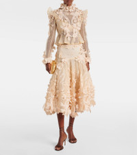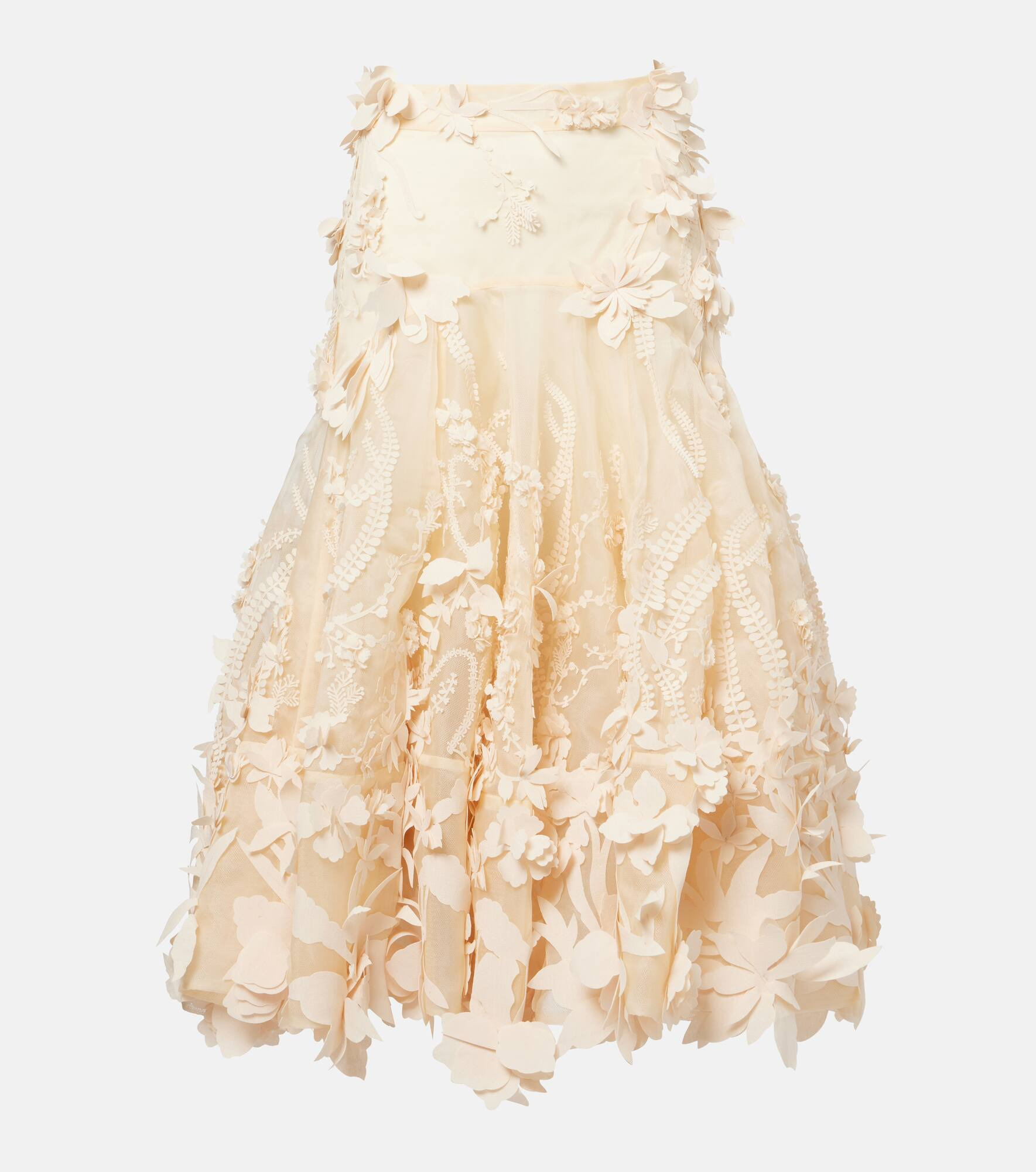 Hypnotic floral-appliqué silk midi skirt