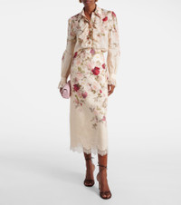 Part of Zimmermann's Hypnotic collection, this pencil skirt is a romantic addition to your edit. Made from pure linen, the design is printed with a charming rose motif and features lace trims at the hem. Product Details - Material: 100% linen - Care instructions: dry clean - Made in China - Designer color name: Cream Cascade - Item color: white, multicolor - Trim: 100% polyester - Lining: 100% cotton - Closure: zipped back - Fully lined - Item number: P01101537 Size & Fit - True to size - Non-stretchy fabric - High-waisted - slit length 43,0cm-17" - The model seen in the picture is 178cm-5'10" and wearing a size 0