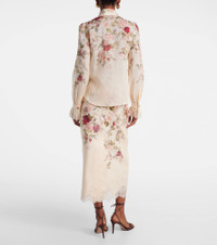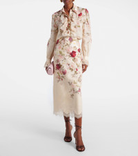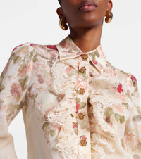 Zimmermann’s romantic designs and vibrant prints hold a special place in the wardrobes of its loyal customers. The Hypnotic floral blouse is crafted from ramie and features a pointed collar, lace-trimmed details, and snap-button closures. Product Details - Material: 100% ramie - Care instructions: dry clean - Made in China - Designer color name: Cream Cascade - Item color: beige, green, red - Hardware color: gold - Material II: 100% polyester - Collar: classic (Straight point) - Cuff: buttoned, frilled - Closure: concealed buttoned front - Item number: P01101538 Size & Fit - True to size - Semi-sheer - Straight fit - Non-stretchy fabric - Falls to the hip - The model seen in the picture is 178cm-5'10" and wearing a size 0