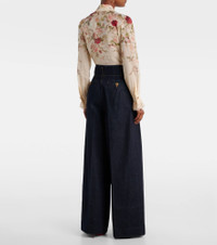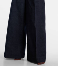 These tailored wide-leg jeans from Zimmermann are cut to an exaggerated high waist and feature a wide hem with belt loops. The style is finished with gold-toned button detailing, all-over topstitching, and functional pockets. Product Details - Material: 75% cotton, 25% viscose - Care instructions: machine wash at 30 degrees - Made in China - Designer color name: Night Sky - Item color: blue - Lining: 86% polyester, 14% cotton - Belt loops - Pockets: slant pockets, back pockets - Closure: zip and button fastening - Hardware color: gold - Item number: P01101524 Size & Fit - Fits large to size - we recommend trying one size smaller - Non-stretchy fabric - Wide-leg - High-rise - The model seen in the picture is 178cm-5'10" and wearing a size 00