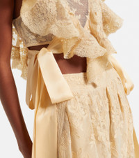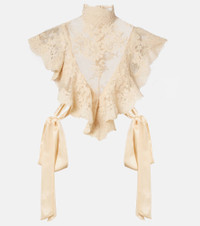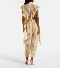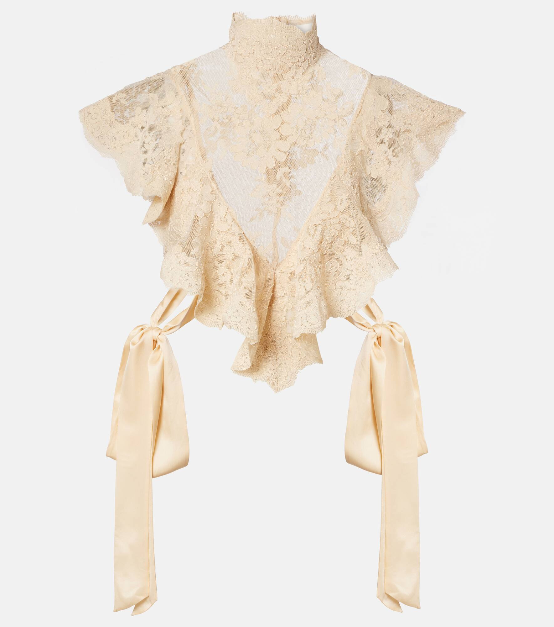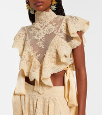 Incorporate romantic elements from Zimmermann into your ensembles. Made from delicate floral lace, the Hypnotic top is defined by charming ruffled trims and bow details on the sides. Product Details - Material: 100% polyester - Care instructions: dry clean - Made in China - Designer color name: Cream - Item color: beige - Trim: 100% silk - Lining: 100% silk - Closure: zipped back, zipped side, self-ties - Item number: P01101525 Size & Fit - True to size - Semi-sheer - Fitted - Non-stretchy fabric - Cropped - The model seen in the picture is 178cm-5'10" and wearing a size 0