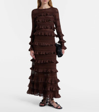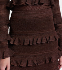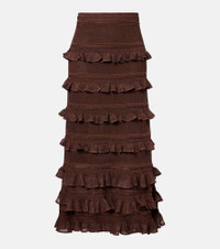 Metallic ruffled pointelle-knit maxi skirt Chocolate