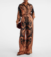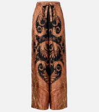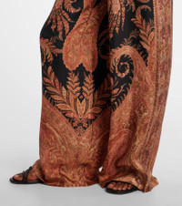 The Hypnotic wide-leg pants from Zimmermann are crafted from airy silk, offering an ethereal and relaxed silhouette. Featuring a drawstring waist and side slit pockets for comfort, the design is adorned with a vibrant Paisley print. Product Details - Material: 100% silk - Care instructions: dry clean - Made in Sri Lanka - Designer color name: Black Paisley - Item color: black, beige - Pockets: side slit pockets - Drawstring waist - Item number: P01101078 Size & Fit - True to size - Elasticated waist - Adjustable at the waist - Non-stretchy fabric - Wide-leg - The model seen in the picture is 178cm-5'10" and wearing a size 0