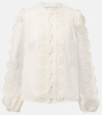 Lucky pintucked broderie anglaise cotton-voile top Cream