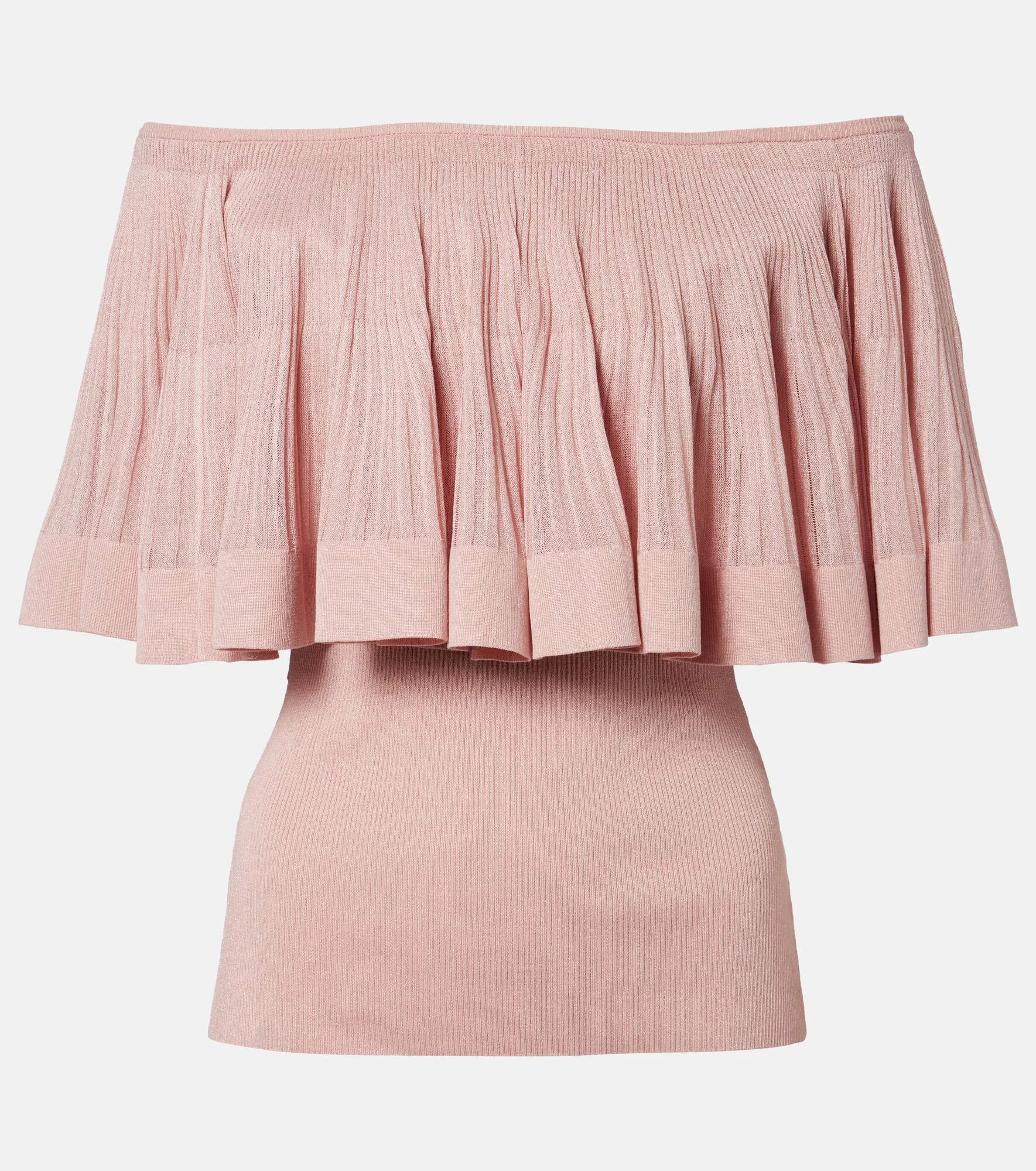 Luna knitted ruffled off-shoulder top