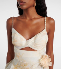 The Memento minidress from Zimmermann is crafted from an airy silk and linen-blend, featuring a criss-cross pleat on the bodice, beaded trim, and a flared skirt. This floral style is finished with boning, adjustable straps, and a shirred back. Product Details - Material: 53% linen, 47% silk - Care instructions: dry clean - Made in China - Designer color name: Rose Arbor - Item color: multicolor - Lining: 100% cotton - Hardware color: gold - Adjustable shoulder straps - Collar: V-neck - Closure: zipped back - Detachable belt - Pockets: side slit pockets - Fully lined - Item number: P01101091 Size & Fit - True to size - Low back - Elasticated top - Cinched waist - Non-stretchy fabric - The model seen in the picture is 178cm-5'10" and wearing a size 0