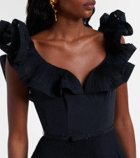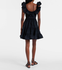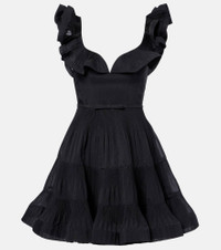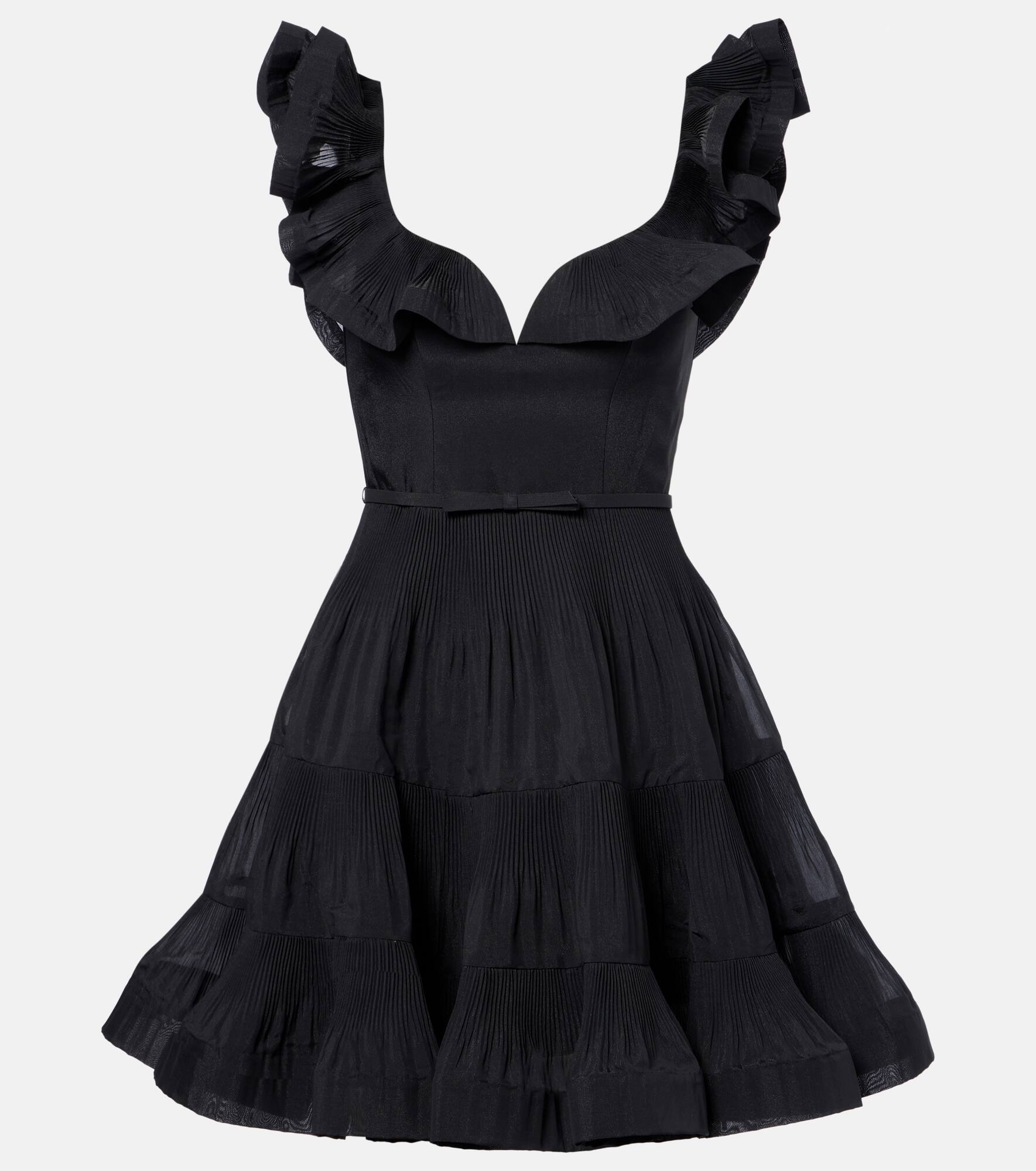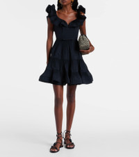 Embrace Zimmermann's graceful aesthetic with this minidress. The style features a sweetheart neckline, voluminous ruffles at the shoulders, and a pleated, tiered skirt. Product Details - Material: 100% polyester - Care instructions: dry clean - Made in China - Designer color name: Black - Item color: black - Lining: 100% cotton - Collar: V-neck - Boning - Closure: zipped back - Fully lined - Detachable belt - Item number: P01101110 Size & Fit - True to size - Internal boned corset for support - Cinched waist - Non-stretchy fabric - The model seen in the picture is 178cm-5'10" and wearing a size 0