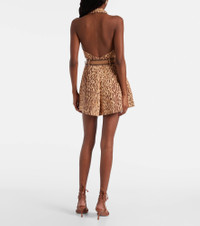 Cascadian belted pleated leopard-print linen playsuit Leopard print