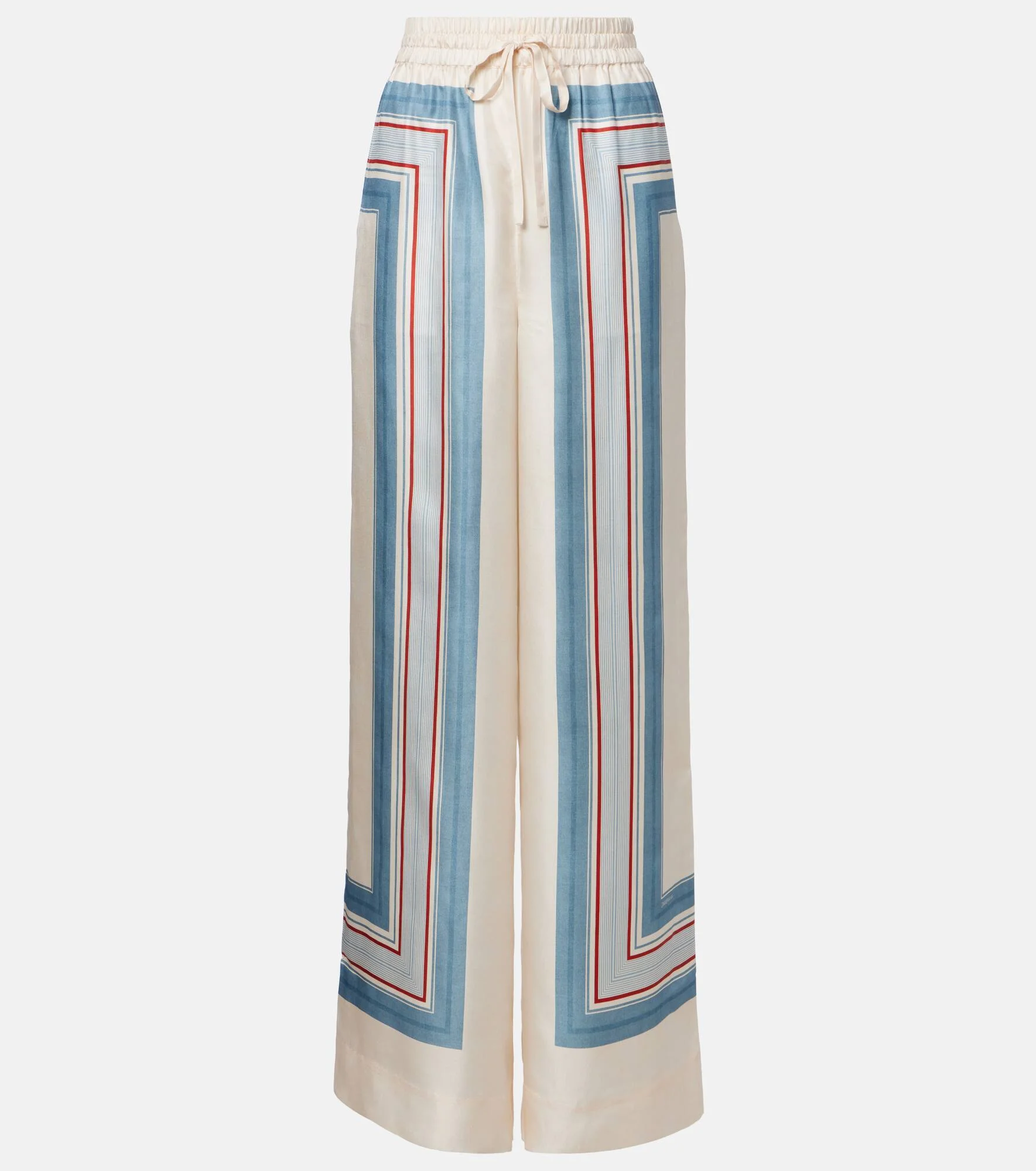 Effortless silhouettes and details define Zimmermann's designs, including these pants. Printed with a geometric motif, this style is made from pure silk with fluid, relaxed legs and an elasticated waistband. Product Details - Material: 100% silk - Care instructions: dry clean - Made in China - Designer color name: Ticking Stripe - Item color: multicolor - Elasticated drawstring waist - Pockets: side slit pockets - Item number: P01129796 Size & Fit - True to size - Elasticated waist - Adjustable at the waist - Non-stretchy fabric - Wide-leg - The model seen in the picture is 178cm-5'10" and wearing a size 0
