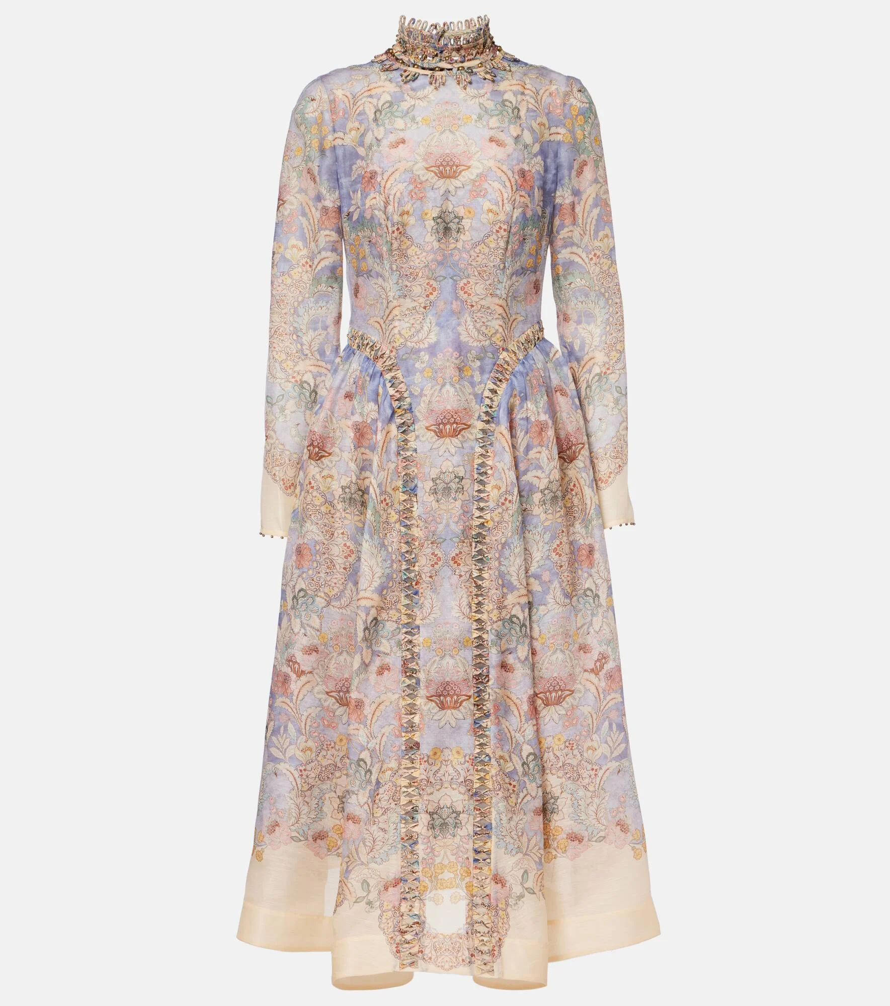 Ethereal and romantic barely scratch the surface when describing a Zimmermann piece. Made from linen and silk, the Rebellion midi dress is a printed piece with a matching slip-style underlay and gold-toned beaded details across the neckline and down the skirt. Product Details - Material: 55% linen, 45% silk - Care instructions: hand wash - Made in China - Color: multicoloured - Designer color name: Blue Floral - Trim: 100% polyester - Lining: 100% polyester - Lining II: 86% polyester, 14% elastane - Detachable lining - Closure: buttoned back, concealed zipped back - Pockets: side slit pockets - Item number: P01129772 Size & Fit - Fits large to size - we recommend trying one size smaller - Cinched waist - Please note: Slip dress is fitted - Non-stretchy fabric - The model seen in the picture is 178cm-5'10" and wearing a size 00
